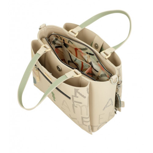 Kabelka má odnímateľný popruh s nastaviteľnou dĺžkou, recko na zips na vonkajšej strane tašky.