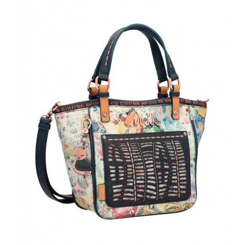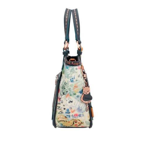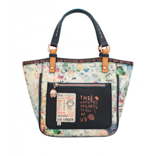 DÁMSKA CROSSBODY KABELKA ŠPANIELSKEJ ZNAČKY ANEKKE Z KOLEKCIE NATURE PACHAMAMA, KTORÚ ZDOBÍ PRÍVESOK A RÔZNE KULTÚRNE PRVKY AMAZÓNIE AKO SÚ NAPR.KOVOVÉ LOGO, OZDOBNÉ NÁŠIVKY, NITY POD., FAREBNÉ KORÁLKY, NITY A CVOČKY, VÝŠIVKY A POD. TÁTO KOLEKCIA BOLA VYROBENÁ Z 80 % RECYKLOVANÝCH MATERIÁLOV, KTORÉ POCHÁDZAJÚ Z PLASTOVÝCH UZÁVEROV. KOLEKCIA MÁ PEČAŤ CONTROL UNION CERTIFICATIONS BV, KTORÁ ZARUČUJE, ŽE IDE O RECYKLOVANÝ A EKOLOGICKÝ PRODUKT.