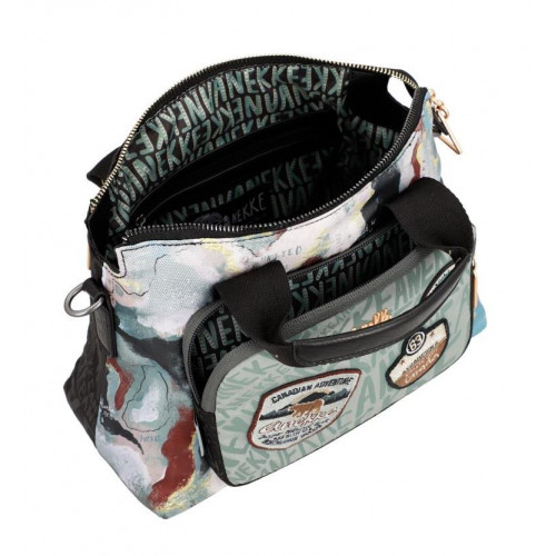 DIZAJN TAŠKY KOMBINUJE POTLAČ INŠPIROVANÚ RELIÉFNOU MAPOU KANADSKÝCH HÔR (OROGRAFICKÁ MAPA), KTORÁ VYTVÁRA ORIGINÁLNU POTLAČ S MASKOVACÍM EFEKTOM.