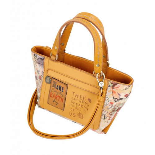 DÁMSKA CROSSBODY KABELKA ŠPANIELSKEJ ZNAČKY ANEKKE Z KOLEKCIE NATURE PACHAMAMA, KTORÚ ZDOBÍ PRÍVESOK A RÔZNE KULTÚRNE PRVKY AMAZÓNIE AKO SÚ NAPR.KOVOVÉ LOGO, OZDOBNÉ NÁŠIVKY, NITY POD., FAREBNÉ KORÁLKY, NITY A CVOČKY, VÝŠIVKY A POD. TÁTO KOLEKCIA BOLA VYROBENÁ Z 80 % RECYKLOVANÝCH MATERIÁLOV, KTORÉ POCHÁDZAJÚ Z PLASTOVÝCH UZÁVEROV. KOLEKCIA MÁ PEČAŤ CONTROL UNION CERTIFICATIONS BV, KTORÁ ZARUČUJE, ŽE IDE O RECYKLOVANÝ A EKOLOGICKÝ PRODUKT.